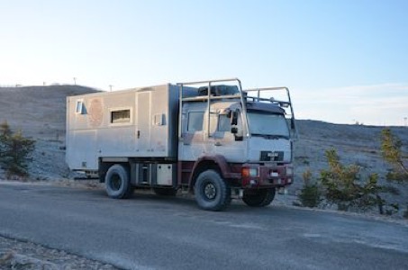 Beau avec givre et vent d’Est,- 3°C après une nuit à -4°C. Babar est tout givré, comme le paysage de pistes qui l’entoure, l’occasion de faire quelques belles photos après une flambée matinale au gaz nécessaire pour chauffer la cellule descendue à 9°C. Nous dormons toujours avec une ou deux fenêtres entrouvertes.