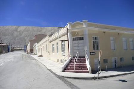 L’Officina salitrera Chacabuco est créée en 1912 à 106 km au Nord-Est d’Antofagasta. L’entreprise avait construit sa propre ville pour héberger les 2'000 ouvriers qu’elle employait et leurs familles. Cette communauté vivait en cercle fermé, isolé du reste du monde, avec ses propres commerces, son école, son hôpital, son église, son théâtre qui pouvait accueillir plus de 1'000 spectateurs, son square et ses installations sportives.
