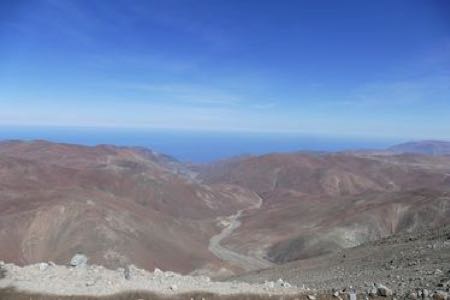 Nous nous sommes arrêté hier soir sur une magnifique esplanade panoramique récemment aménagée, une vingtaine de kilomètres avant Caleta El Cobre où nous rejoindrons la côte. Depuis ce point de vue à 1'700 mètres, avec bancs et tables, nous dominons les montagnes environnantes et apercevons l’océan Pacifique au loin. Nous pouvons voir que de nombreuses pistes sillonnent les montagnes environnantes et que de nombreux sondages y ont été faits…