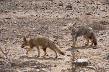 Nous quittons Punta Choros vers 10 heures et rencontrons après quelques kilomètres une famille de 5 renardeaux qui s’approchent alors que nous vidons nos eaux grises. Peu craintifs, ils viennent à 5 mètres de Babar et de son cornac.