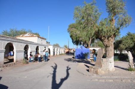 Certaines côtes ont une déclivité impressionnante qui nous oblige à rétrograder fortement. Mais les paysages sont magnifiques, cependant désolés par sable et gravier gris en fin de parcours. Chiu Chiu est située au bord d’un petit rio qui tranche avec ces centaines de kilomètres carrés désertiques. Le bourg compte quelques centaines d’habitants et est construits en maisons de pierre dont la plupart sont anciennes. Il est sympathique de se promener dans ses ruelles et de découvrir les stands de vente d’empanadas et autres pâtisseries qui sont installés sur la place du village.