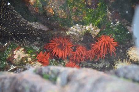 Nous sommes à marée basse et je pars faire un tour d’examen des petits bassins que la mer laisse en se retirant. C’est l’occasion de découvrir que, malgré la présence occasionnelle de mousse, la vie des poissons, mollusques et crabes y est très développée. J’ai même la chance d’entendre, puis de voir une loutre de mer, que le bruit de mon Nikon fait fuir rapidement. Je suis enthousiasmé par la vie rencontrée et mes photos « sous-marines » depuis la surface.