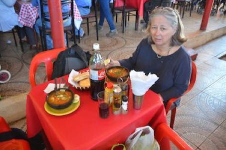 Nous avons trouvé notre havre de paix à l’extrémité de la rue principale, en banlieue Ouest de la localité. La Casa Campestre est un gîte implanté dans un vaste terrain arborisé et clos de murs en torchis. Le bâtiment principal comprend 5 ou 6 chambres à 4 ou 6 lits ainsi que d’agréables pièces de séjours. Un bloc comprenant douches et sanitaires avec eau chaude, pour les campeurs, est installé dans le jardin. Une aire de camping pour tente est nichée sous de vieux arbres et jouxte un parking qui permet de parquer, entre des arbres, 4 véhicules de la taille de Babar. Après avoir franchi le portail étroit, et été accueillis par la gérante Ursula, nous pouvons nous installer confortablement avec nos amis Harry et Doris qui ne resteront que deux nuits.