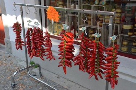 Notre valse lente franco-espagnole nous donne également l’occasion de découvrir Espelette, dont nous entendons parler des piments de légendes depuis des décennies. Un parking pour camping-car nous accueille agréablement et nous partons visiter le fameux village à vocation pimentée. Tourisme de masse oblige, les maisons du cœur du village sont toute soigneusement restaurée et repeinte et arbore de belles chaînes de piments le long de leurs façades. Des boutiques aguichantes offrent les produits régionaux à la vente et nous profitons d’un bon resto familial pour nous y essayer.