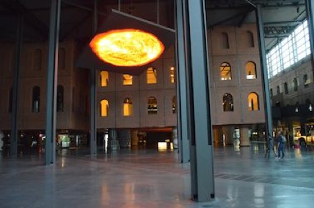 Notre première après-midi est consacrée à parcourir l’Ensanche et ses immeubles de la période art-déco. Nous visitons l’Azkuna Zentroa, les anciens chaix de la ville, construit en 1909 en forme de château belle-époque. Le bâtiment a été vidé complètement sous l’impulsion du designer français Philippe Starck qui a reconstruit à l’intérieur 3 immeubles en brique soutenu par 43 colonnes représentant chacune une civilisation à un temps donnée. Le vaste atrium de l’entrée principale est surplombé par un écran géant qui projette l’image filmée du soleil.