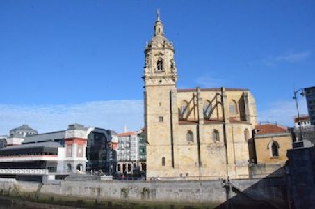 Bilbao a été fondée en 1300 par Diego de Haro, seigneur de Biscaye, à proximité d’une petite église et d’un gué qui traversait le Nervion, peu avant le début de son long estuaire vers la mer. Le gué fut bientôt équipé d’un pont, tandis que la ville aux sept rues, selon le plan établi par son fondateur, fut équipée d’une muraille. Elle développa bientôt le commerce maritime, favorisée par son port protégé au fond de l’estuaire. Dès le 16ème siècle elle bénéficia du régime particulier d’un consulat qui stimula son développement économique, lui permettant de développer des échanges maritimes avec le Nord de l’Europe, France, Flandres et Angleterre. La révolution industrielle dynamisa, dès le dernier quart du 19ème siècle, le développement économique de la ville située dans une région de mines de fer. Les bateaux partaient chargé de minerai en direction de l’Angleterre et rapportaient du charbon qui permis le développement d’une importante industrie sidérurgique, au long du Nervion, en direction de la mer. Le port, dimensionné au développement de la taille des cargos, se déplaça à 2 kilomètres en aval de la ville historique puis progressivement au-delà. Dans la même période, celle-ci développa un nouveau quartier commercial et industriel sur la rive gauche du fleuve, dans l’intervalle qui séparait le centre historique de la plateforme portuaire. Ce quartier de 3 à 4 kilomètres carrés, appelé « Ensanche » (élargissement), accueilli rapidement les immeubles imposants des industriels, banquiers et autres commerçants attirés par le succès de la ville.