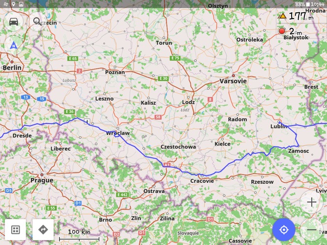 Après les opérations logistiques et le plein dans une station proche nous quittons Cracovie vers 10 heures en direction du nord-est et de la ville historique de Zamosc. La route est assez bonne, mais par tronçons fortement creusée par les roues de camion dont les sillons crochent sous les roues de Babar qui progresse par moment en danseuse. Nous traversons des villages étendus au long de la chaussée et qui se consacrent principalement aux cultures maraîchères sur des parcelles plutôt petites. Ce n’est qu’après une soixantaine de kilomètres que commence les parcelles de grands domaines mécanisés issus des anciennes fermes d’Etat. Nous apercevons parfois les bâtiments délabrés de ces anciens grands établissements. Le temps a tourné au beau et tout va pour le mieux, nous roulons entre 70 et 75 km/h.