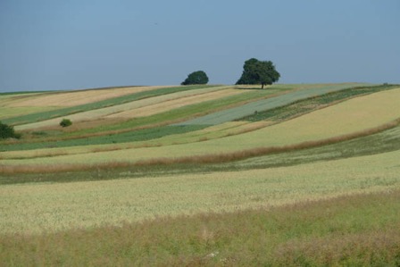La route nous permet de découvrir une structure parcellaire particulière : des petites parcelles de deux ou trois mille mètres carrés entourent généralement les villages, exploitées sans doute par de petits paysans qui font également les foins sur les bords de route, alternent avec des grandes parcelles de cultures sarclées de plusieurs dizaine d’hectares, sans doute en main de société ou de grands propriétaires.