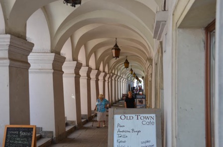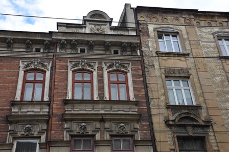 Certains sont restaurés, d’autres décrépis avec des moulures ou pierres de tailles érodées. Mais les structures des bâtiments sont essentiellement en briques recouvertes de parements qui imitent la pierre. En pénétrant dans la vieille-ville nous découvrons son plan en damiers de rues étroites et ses nombreux bâtiments historiques. Le centre de la cité est la place du Rynek (marché), carré de 200 mètres de côté, bordé de maison construite au 14ème et 15ème siècle dont la majorité a été rénovée en style néoclassique. Au milieu de la place, la halle au drap est un long bâtiment à arcades reconstruit, après un incendie en 1555 dans le style renaissance. Les draps ont été remplacés par les boutiques de souvenirs touristiques.
