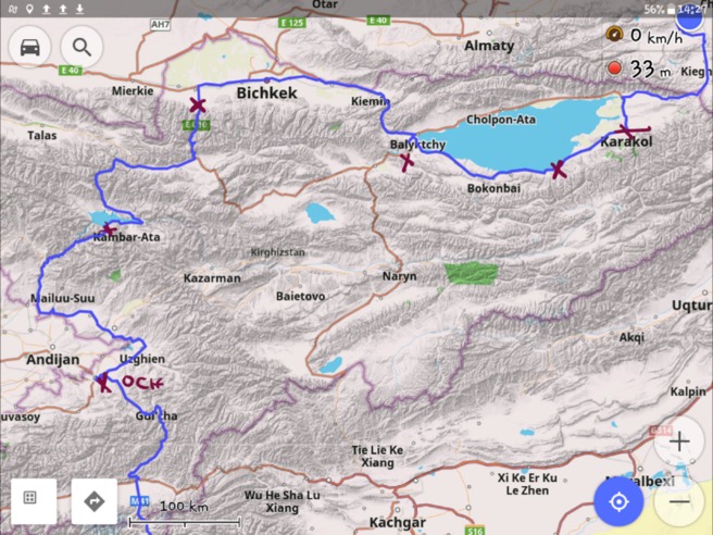 Les policiers nous interpellent en souriant, soulagés de voir enfin les propriétaires de cet indéplaçable véhicule. La place doit être évacuée car le Président Kirghize accueille cet après-midi deux homologues pour l’ouverture des Jeux nomades qui a lieu demain au bord du lac Issy Kul. Nous n’avons plus qu’à déguerpir en vitesse pour laisser place aux officialités, écourtant notre visite de la ville.