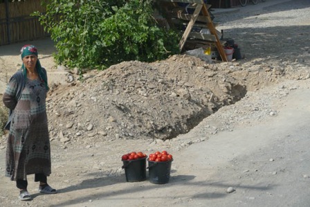 Nous démarrons vers 10 heures après avoir fait le plein d’eau. Nous devons effectuer un contournement de la Fergana ouzbèque par l’Est puisque nous n’avons pas de visa. Retour sur Özgon puis Jalal-Abad par une route assez bonne, bordée de vendeurs de pastèques, courges et légumes.