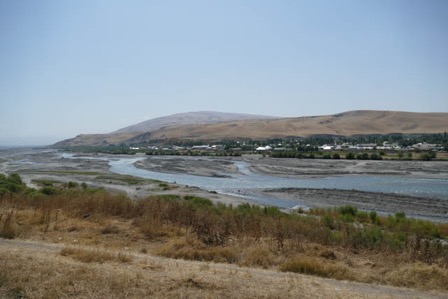 Nous repartons ensuite vers l’ouest en direction de Tash-Kömur pour prendre la direction de Toktogul et de Bishkek. Nous constatons en contournant l’Ouzbékistan et jouant à cache-cache avec sa frontière que le conflit autour de l’eau est bien réel. En effet toutes les rivières qui descendent des montagnes kirghizes sont pratiquement à sec au moment de franchir la frontière, leur précieuse eau étant retenue pour irriguer les terres kirghizes.