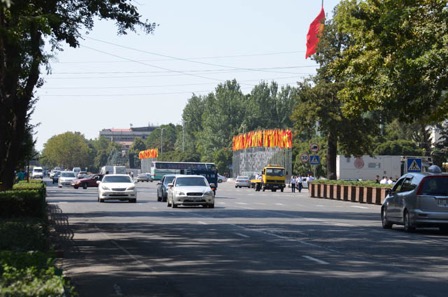 Nous partons ensuite en direction de la capitale Bishkek, 950'000 habitants, située à une soixantaine de kilomètres plus à L’Est. La ville a été d’abord une forteresse russe construite en 1878 au pied des montagnes Alaa Too, à 800 mètres d’altitude. Son plan de rues en damier rappelle son origine militaire, mais les avenues sont larges et abondamment arborisées.