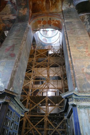 Elle est située dans une avant-cour qui jouxte le kremlin et est actuellement en rénovation intérieure mais un accès partiel est autorisé. Il est captivant de voir l’ampleur du travail de rénovation d’un tel édifice (60 mètres de hauteur) dont les coupoles s’élèvent à plus de 30 mètres. Des échafaudages sont dressés contre une partie des murs et laissent entrevoir des fresques anciennes noircies qui attendent les restaurateurs. L’iconostase a été entièrement déposée et il ne reste que sa charpente en bois qui est fixée un bon mètre en avant du mur. Dans la nef on aperçoit, derrière les caissons décoratifs en bois partiellement démontés, les vieux crépis des murs, porteurs eux aussi de fresque ancienne.