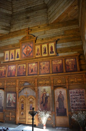 Nous partons ensuite avec Sylviane, par les ruelles entre les isbas, pour visiter le monastère Nikolski qui aurait été fondé au 14ème siècle. Il aurait accueilli le Tsar Ivan le Terrible, au 16ème siècle, qui l’aurait par la suite fait construire en pierre. Détruit par un incendie il fut restauré et accueillit, au début du 18ème siécle, Pierre le Grand qui y séjourna plusieurs fois lorsqu’il développait sa flotte. Il fut détruit par les soviétiques et est en restauration depuis 1999. On se rend compte de l’ampleur des restaurations dans un bâtiment conventuel vide du sol au toit. Sa cathédrale Saint-Nicolas, déjà restaurée, domine le site et est entourée de jardins magnifiques.