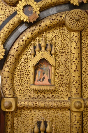 Nous dégustons un excellent repas dans un coquet restaurant situé à proximité du monastère avant de déambuler dans la rue centrale de la localité entourée de magnifiques isbas anciennes aux fenêtres décorées.