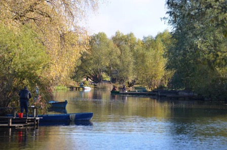 Au matin je fais une petite excursion jusqu’à l’église des Quarante Martyrs qui marque l’embouchure de la rivière dans le lac Plescheïevo. L’édifice date de 1755 et aurait pu s’appeler l’église des Quarante pêcheurs car ils sont au moins aussi nombreux sur les 300 mètres de rivière de mon parcours.