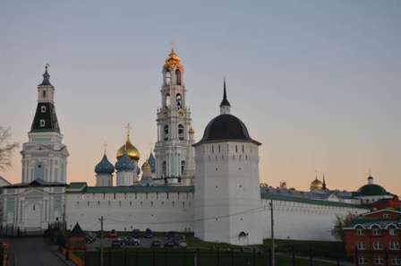 Notre bon de taxe poids-lourd étant périmé, nous prenons ensuite le chemin des écoliers sur des petites routes taconnées pour gagner, à travers de belles forêts, campagnes et petits villages, Sergueï Possad, où se trouve l’une des 12 Laures de l’église orthodoxe célébrant mon Saint patron, l’un des plus vénérés de Russie.